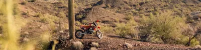 Experience the latest enduro technology from KTM with the 2025 300 XC-W. Including protection from Bullet Proof Designs and SXS Skid Plate, puncture-proof Mousse Bibs and USFS Spark Arrestor.